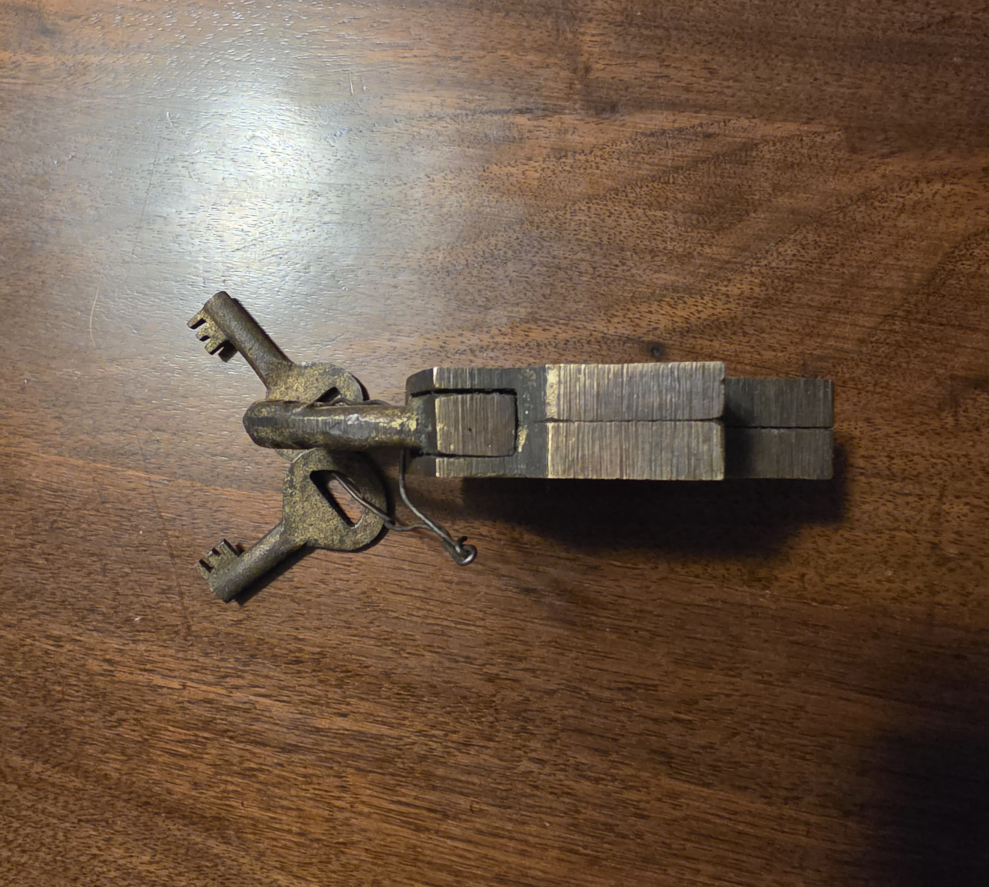 Two skeleton keys connected by wire(ai)